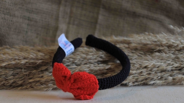 بوند اسود للشعر محبوك من الصوف مع فراشة حمراء